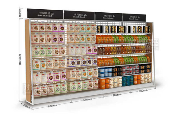 上圖所示是應(yīng)用于便利店食品區(qū)域的單面食品貨架。便利店單面食品貨架采用了通透性更強(qiáng)的網(wǎng)背板設(shè)計,再搭配上簡約時尚的木質(zhì)側(cè)板,整體散發(fā)出一種小清新的氣息,營造出新時代便利店精致、高端的店鋪形象。