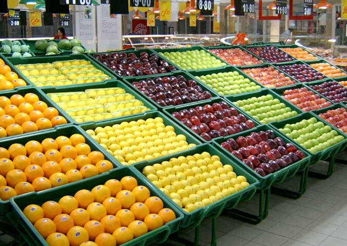 生鮮商品較為特殊,不適宜采用常規(guī)的雙面超市貨架或單面超市貨架做陳列,必須用到專用的果蔬貨架,并且與果蔬直接接觸的層板、展示框等最好不要用鐵制或木制的,避免生銹或腐壞。