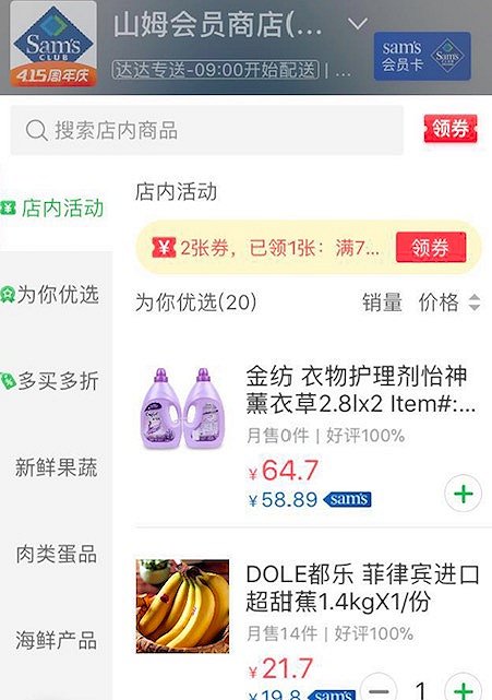 此外,針對極速達(dá)和京東到家服務(wù),山姆還可能拆包部分商品,以滿足會員對生鮮和日常商品少量多次購買的需求。