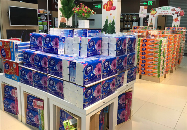 衛(wèi)生紙——這類商品的在各個家庭中的日常消耗量很大,所以在超市里的銷售速度往往是最快的,很適合采用量感陳列的方式,并要注意及時補貨,盡量避免超市貨架出現(xiàn)空缺。