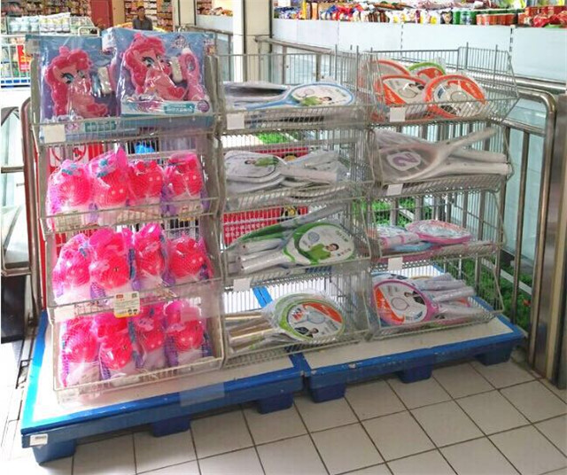 并不是所有商品都適合直接擺放在超市貨架的層板上,有些商品需要懸掛陳列,這時就需要給超市貨架配置掛鉤。