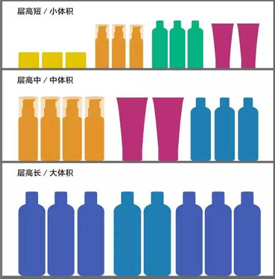 超市貨架上層擺放小體積商品;中層擺放常規(guī)體積商品;下層則擺放大體積商品,按照這種擺放方式,能讓商品展示效果更井然有序,方便顧客按需選購。