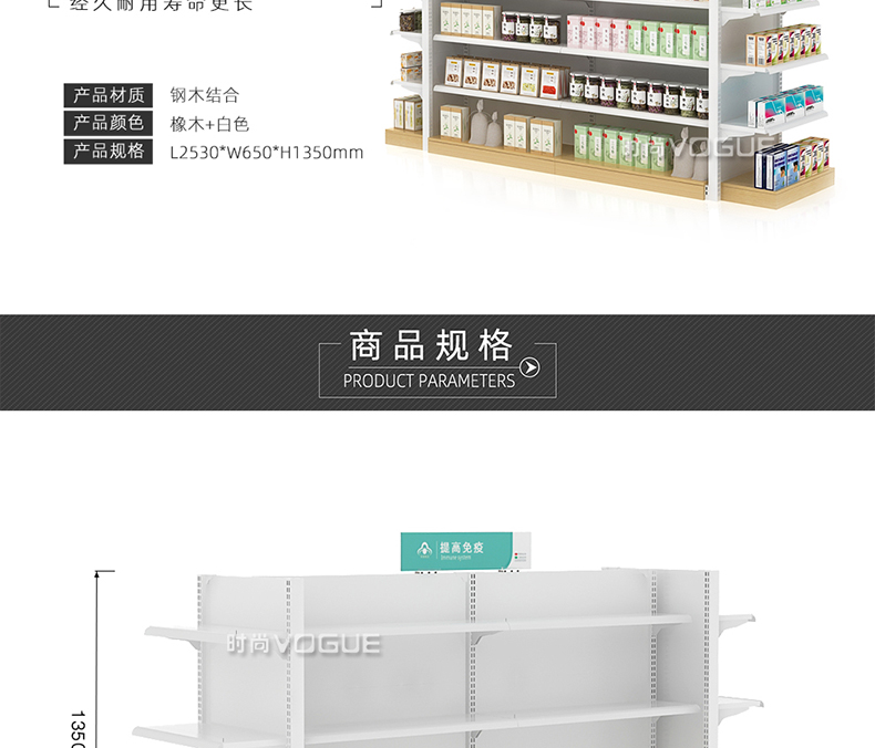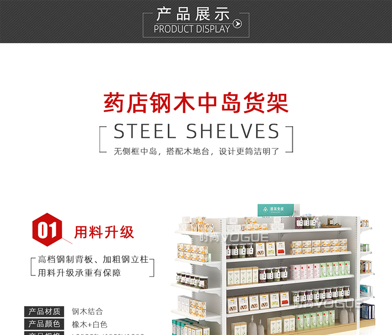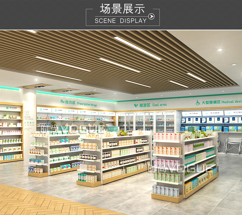 • 產品描述:深圳市時尚商貿有限公司為社區(qū)藥店設計了一款經濟型的開放式西藥貨架,以下詳細介紹了藥店非處方貨架的尺寸、結構和陳列效果。