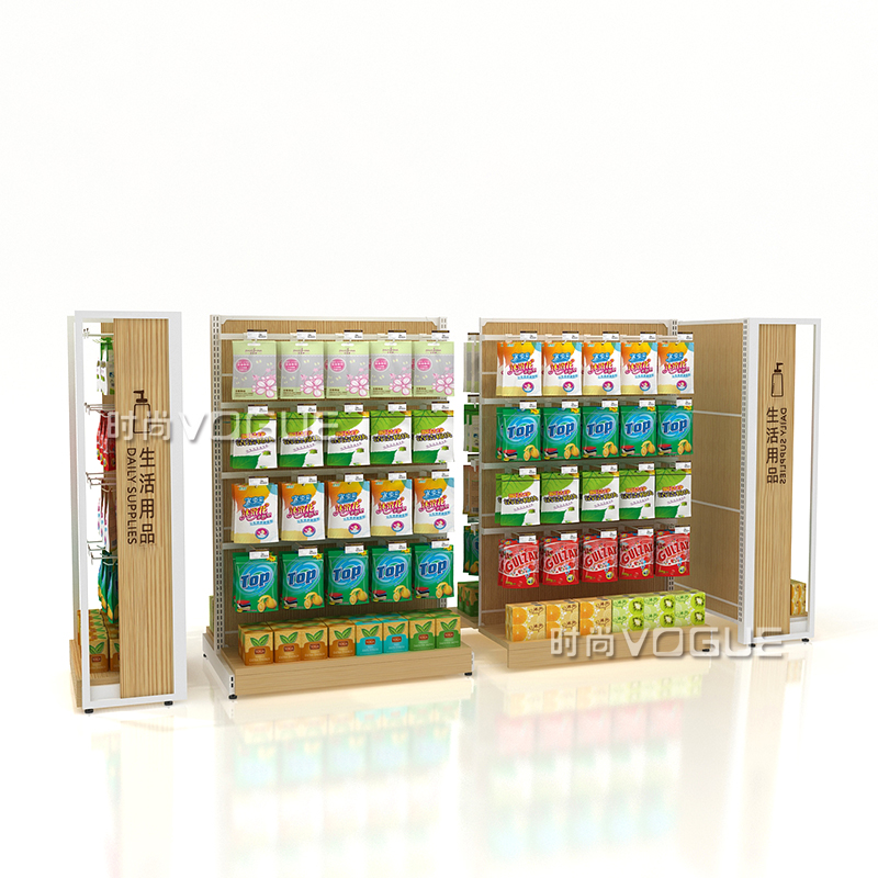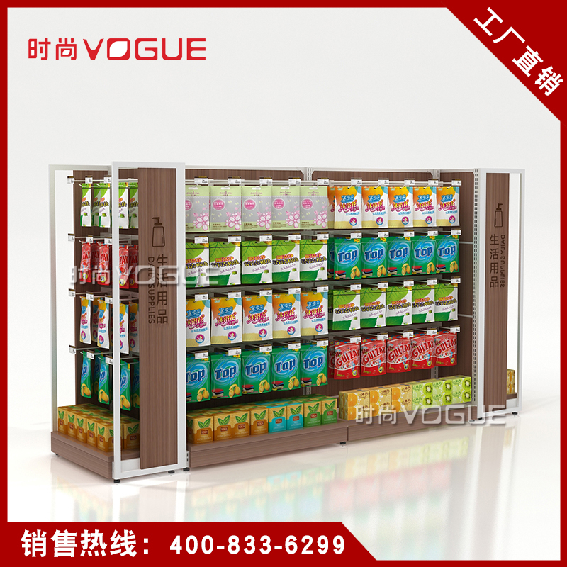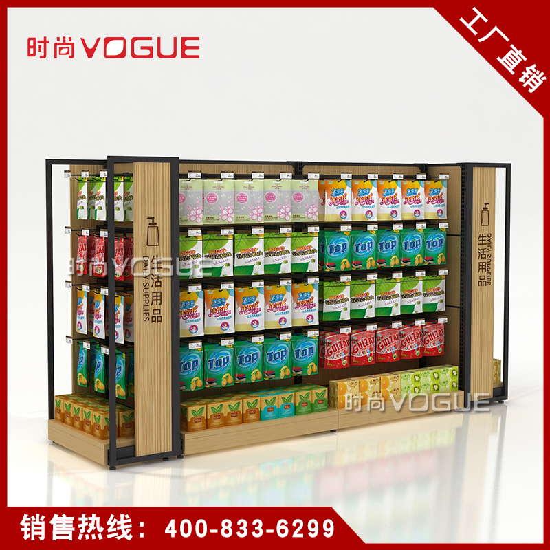 - 產(chǎn)品描述:本款木背板食品貨架是便利店貨架廠家最新推出的一款便利店貨架,掛鉤和層板可以互換,底部增加木地臺(tái),更加美觀大氣。