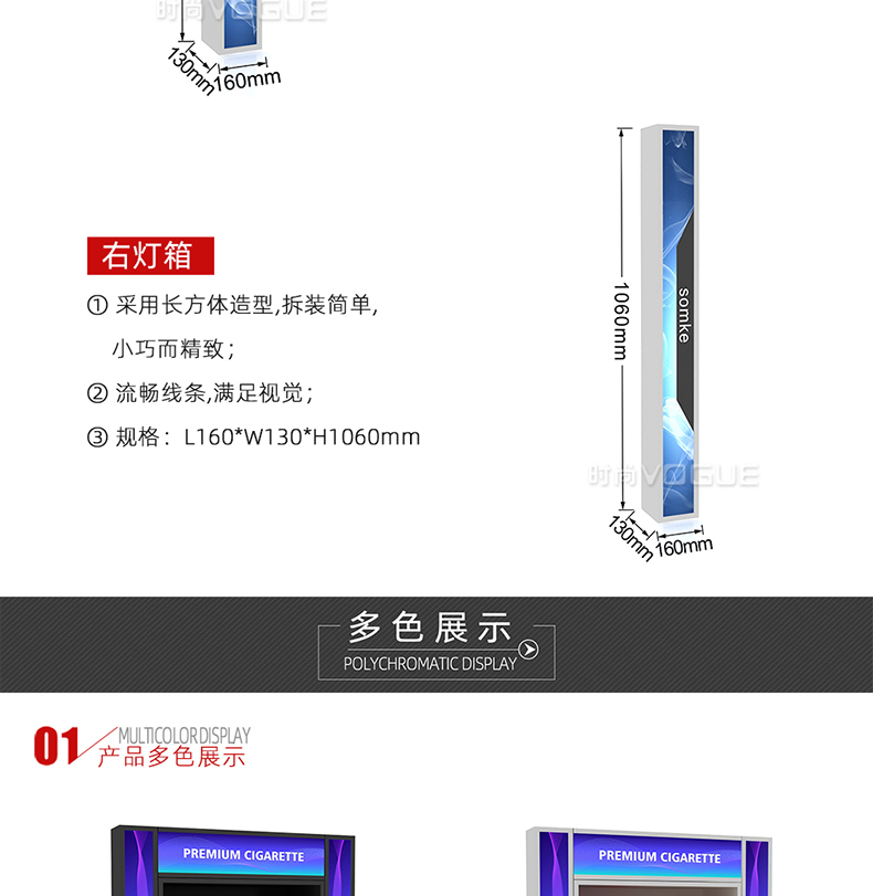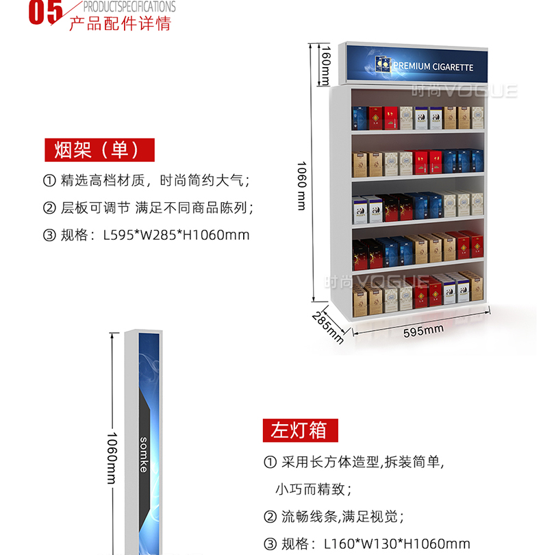 【描述】此款便利店貨架是時(shí)尚貨架為便利店收銀區(qū)設(shè)計(jì)的而一款收銀臺(tái)煙酒架。它由便利店煙架、便利店白酒架、收銀臺(tái)紅酒架組合而成。便利店煙酒架立柱采用優(yōu)質(zhì)鋼材,具有很好的承重能力。頂部配有磁吸燈箱廣告牌,即可宣傳品牌,又可以指引顧客,讓整個(gè)收銀區(qū)的工作效率顯著提高。此款收銀區(qū)煙酒架是框架式結(jié)構(gòu),可以直接放置在收銀背柜上,穩(wěn)定性和安全性很好。