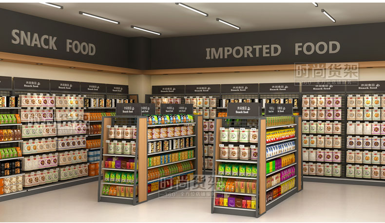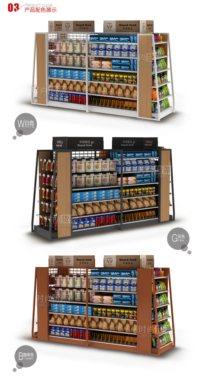 - 產(chǎn)品描述:此款超市貨架是時(shí)尚貨架專為超市食品區(qū)域打造的一款通透性更強(qiáng)的網(wǎng)背板零食貨架。