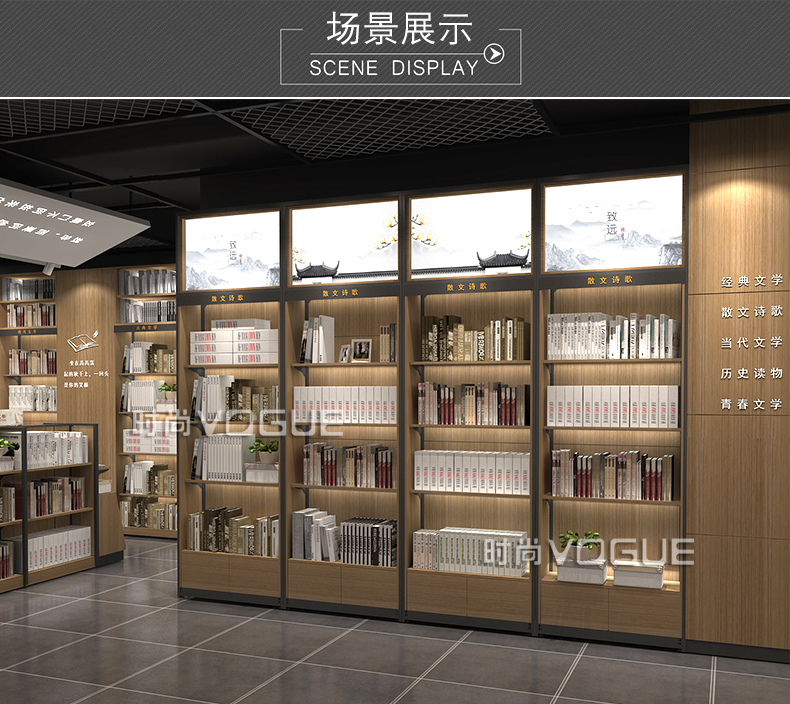- 產(chǎn)品描述:這是時(shí)尚貨架專為書店圖書陳列打造的一款圖書靠墻書架。